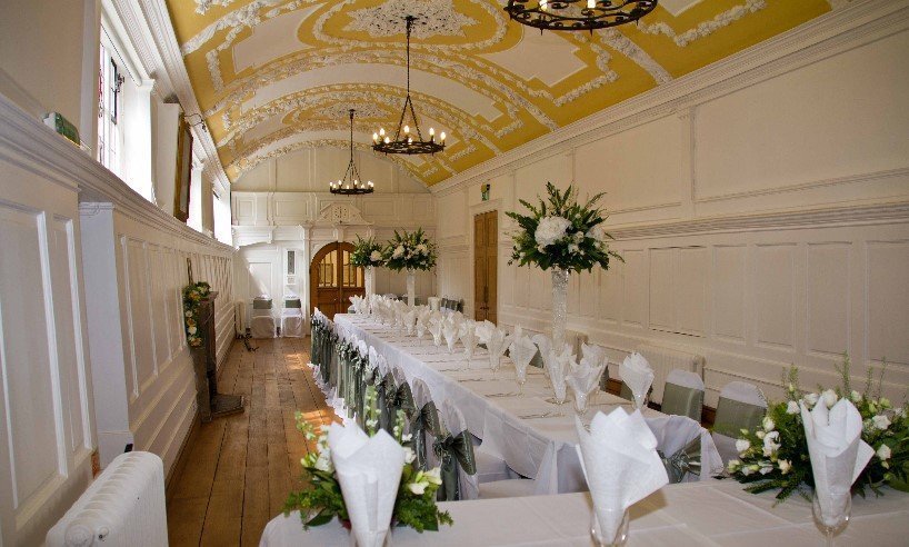 St Swithun’s Lodge meets in the oak panelled Council Chamber in The Guildhall in the centre of Abingdon. The Guildhall dates back to around 1440, and features glorious baroque rooms which are now in use for receptions and public events. After our meetings we dine in the Roysse Room, which was a a school at the time of Mary Tudor, established in 1556.